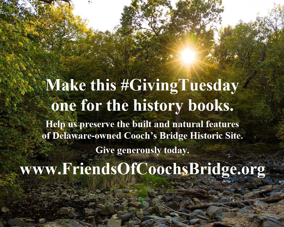 November 30 marks Giving Tuesday, since 2012 the nonprofit world’s biggest online fundraising day of the year, and Friends of Cooch’s Bridge, the new group dedicated to preserving state-owned Cooch’s Bridge Historic Site, plans to get in on the action.