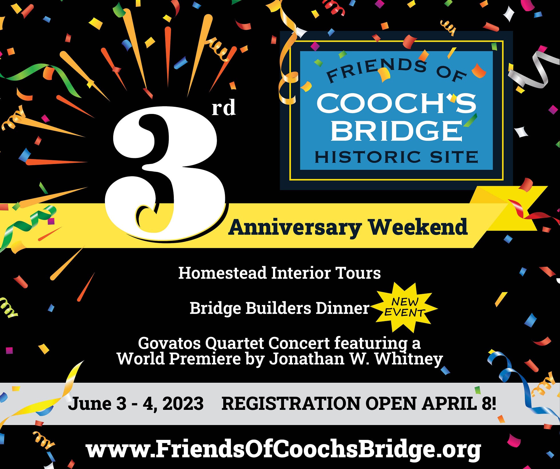We’re excited that June will mark the third anniversary of the Friends of Cooch’s Bridge Historic Site and are celebrating with three extraordinary events you won’t want to miss: